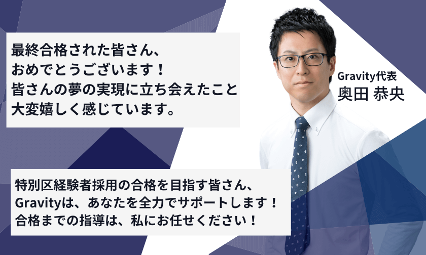 Gravityの最強講師陣が、あなたの試験合格と転職活動を全力でサポートいたします。