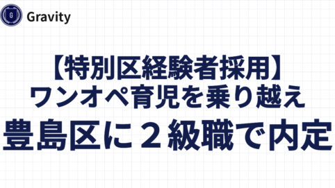 特別区への転職を決め、予備校を探した際に最初に見つけたのがGravityで、「特別区経験者採用」への専門性の高さを感じました。その後、低価格の他の予備校も検討しましたが、指導内容や合格実績などの点から信頼できそうなGravityに魅力を感じました。